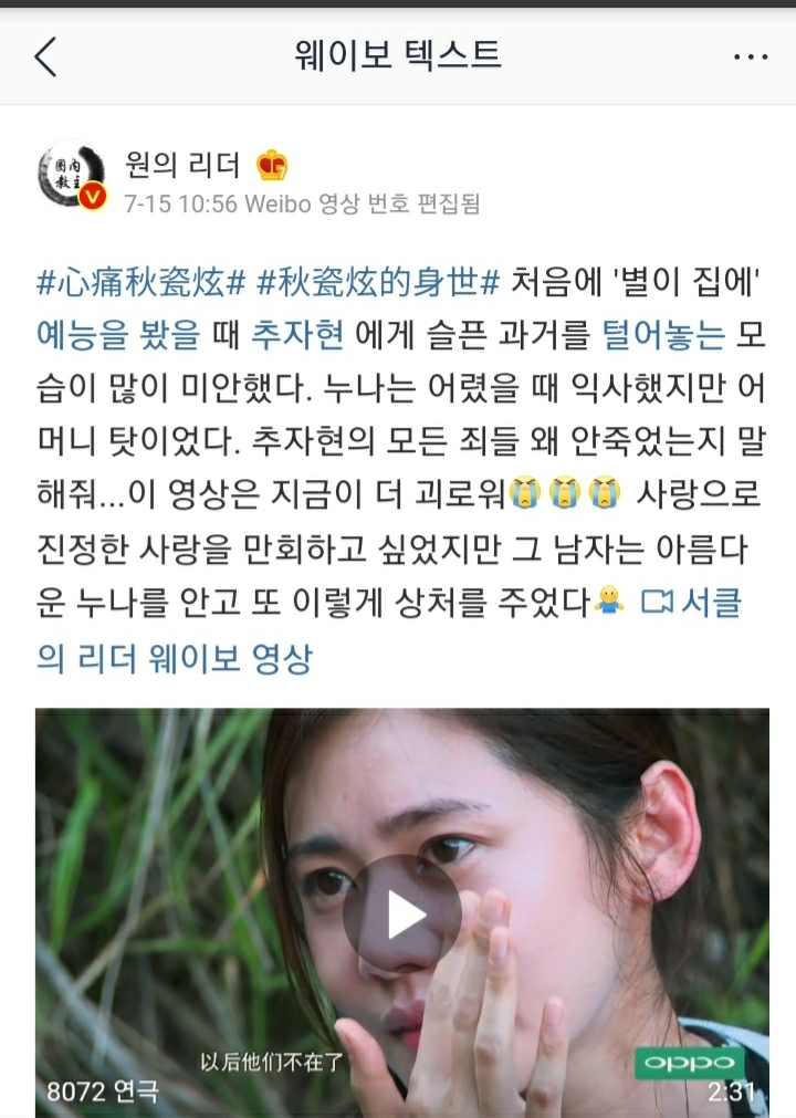 드러낸 모습을 보고서 중국네티즌들 다 감동받음