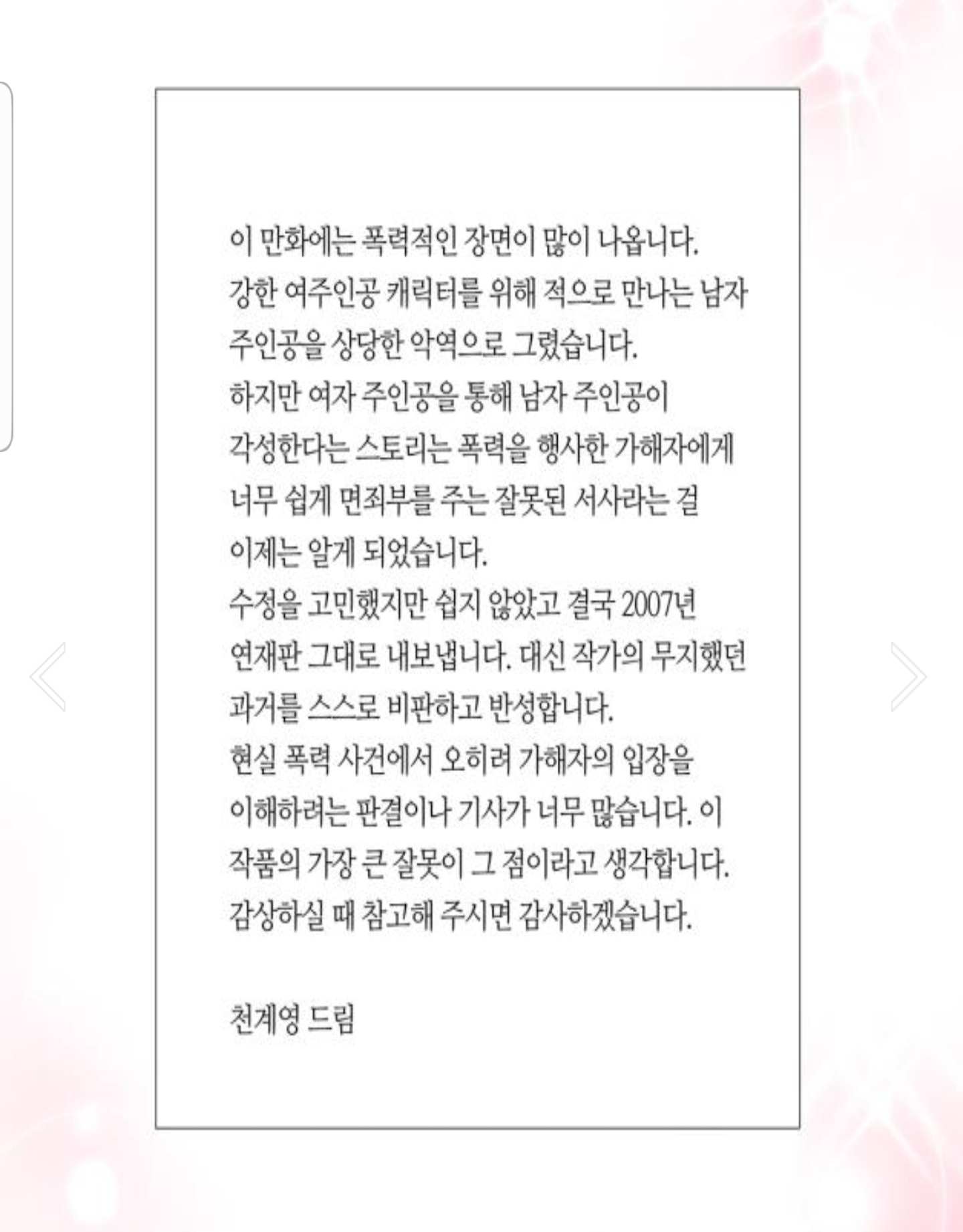 예전 작품에 폭력적인 장면들이 있다는걸