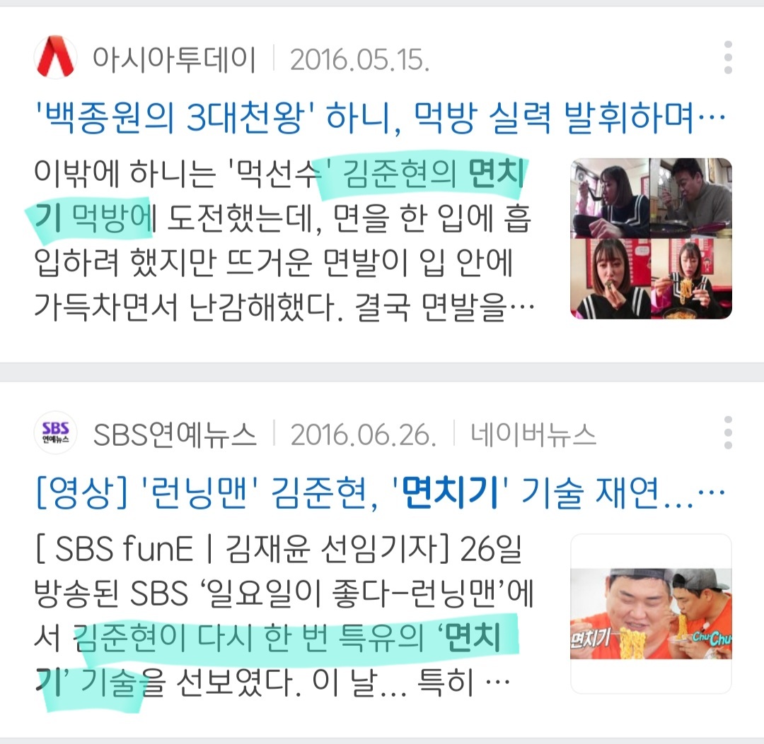 김준현이 런닝맨에서 면치기 기술이라며 언급