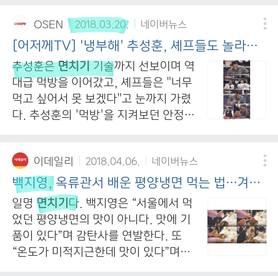 옛날에는 면치기가 ㄹㅇ 사전적 의미의 면치기로 사용된 기사만 있음