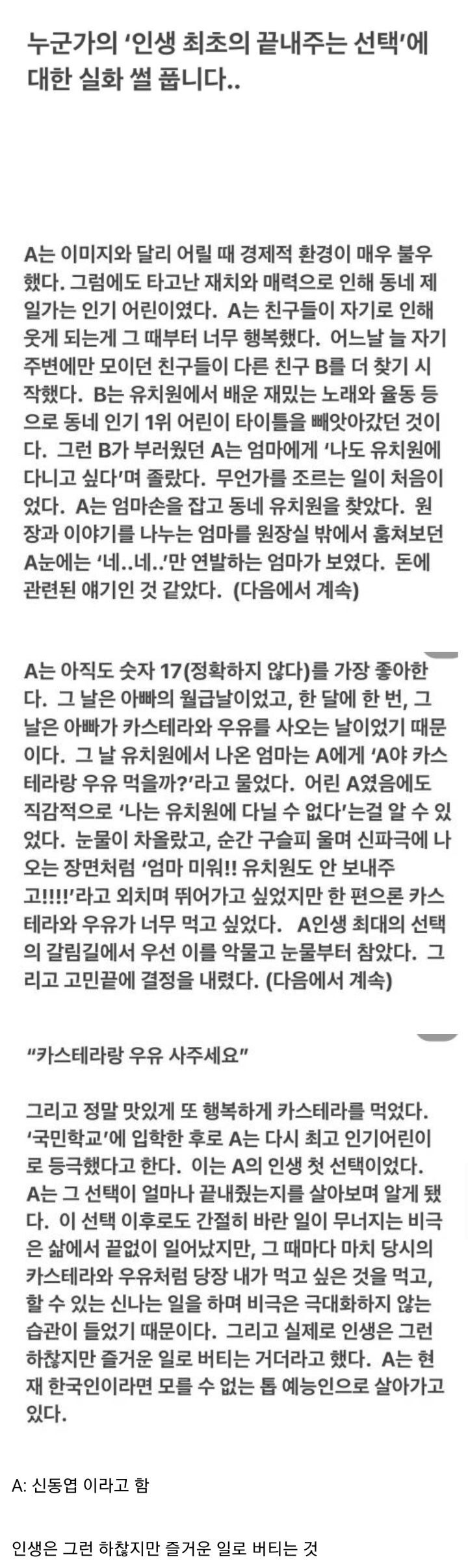 작성시간 22.09.28 와... 유치원 갈 나이에 삶의 비밀을 이미 알고있었구나 멋지다