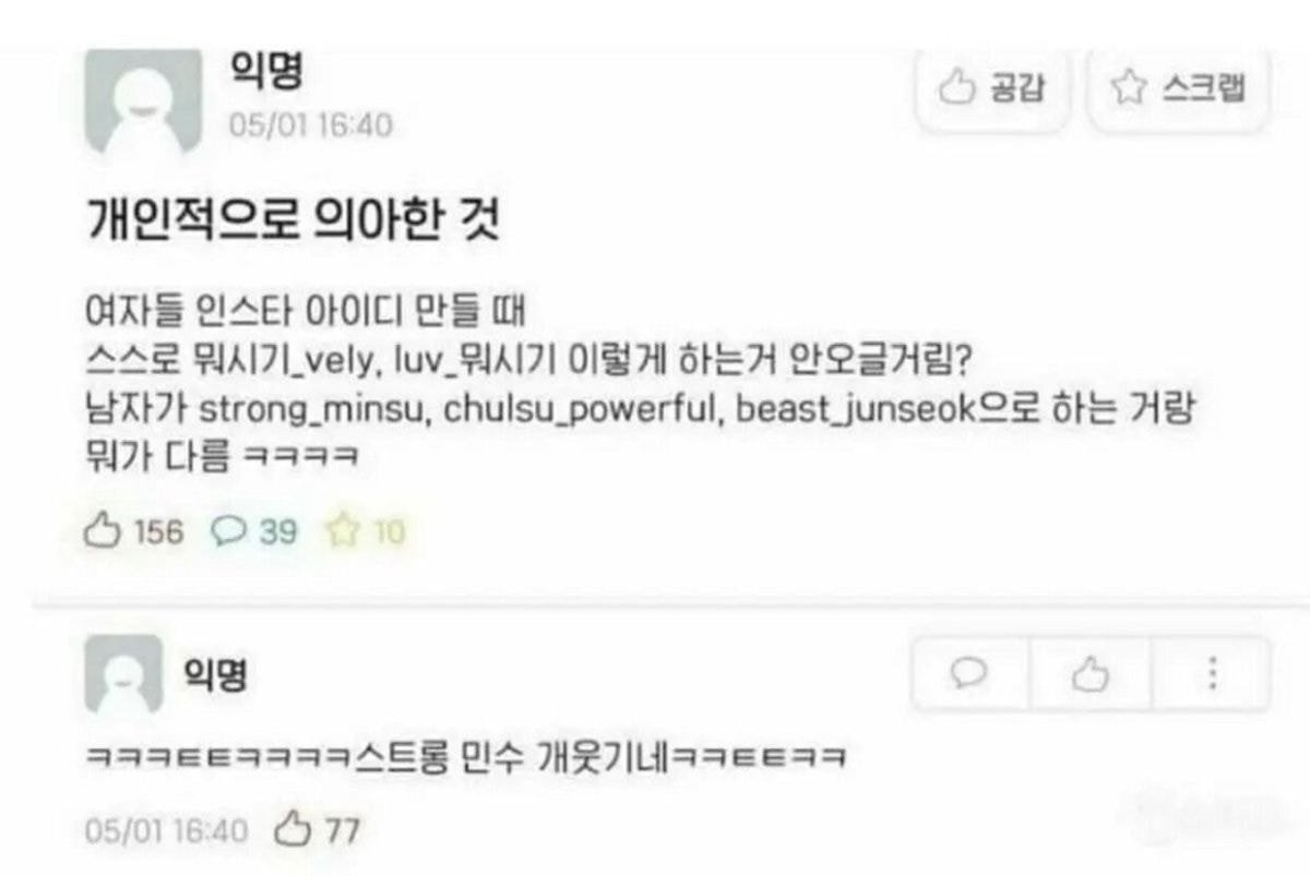 [스크랩] [흥미돋]여자들 인스타 아이디 만들때 의아한 부분..JPG 작성자Sound|작성시간22.09.28|조회수25,070 목록 댓글 49 글자크기 작게가 글자크기 크게가 스트롱 민수ㅋㅋㅋㅋㅋ 다음검색 스크랩 원문 : 도탁스 (DOTAX) 현재 게시글 추가 기능 열기 북마크 공유하기 신고 센터로 신고 댓글 댓글 49 댓글쓰기 답글쓰기 댓글 리스트 작성자일어나라그대여시 | 작성시간 22.09.28 ㅁㅈ 난 둘 다 웃곀ㅋㅋㅋㅋㅋㅋㅋ 작성자1루미낟띠 | 작성시간 22.09.28 여자들은 진짜 사랑스럽잖아 한남들 중에 strong이 어딧노ㅎ 작성자둑도항공 | 작성시간 22.09.28 비스트 준석 ㅅㅂㅋㅋㅋ 작성자기분입니다취향해주세요 | 작성시간 22.09.28 pig_minsoo 작성자Strings | 작성시간 22.09.28 즈그는 맨날 real 하면서 댓글 전체보기