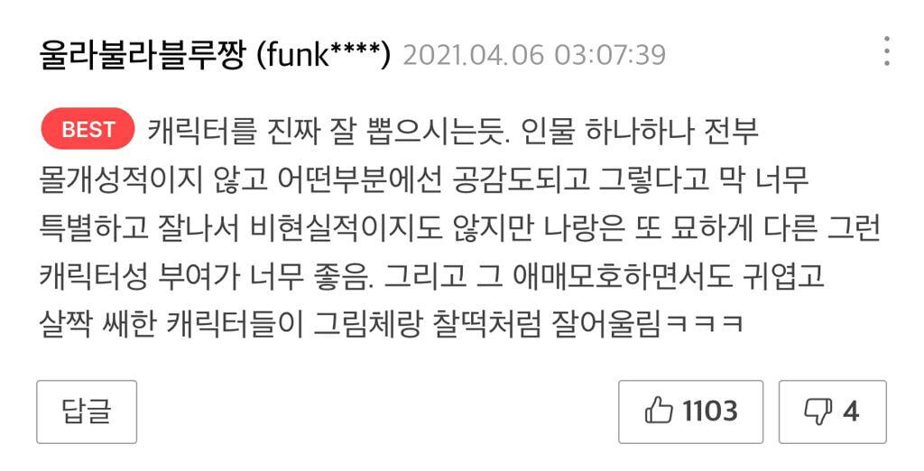 현실 어딘가에 존재할 거 같은 입체적인 캐릭터들