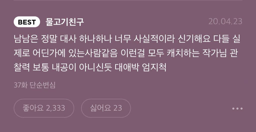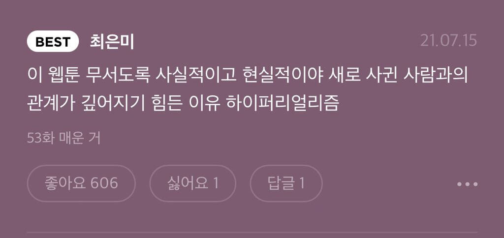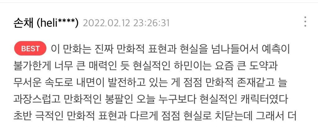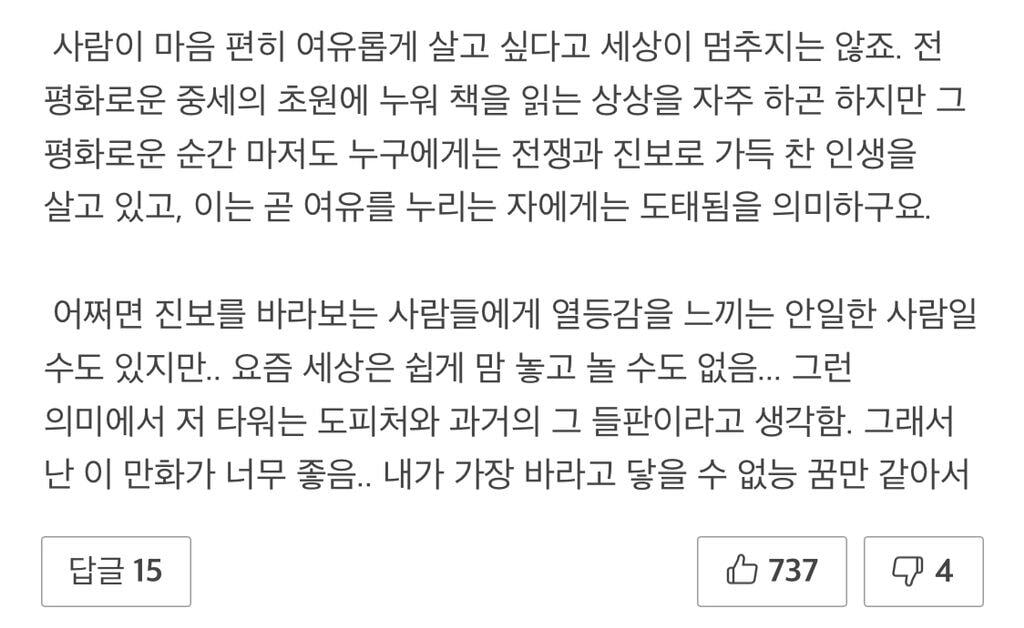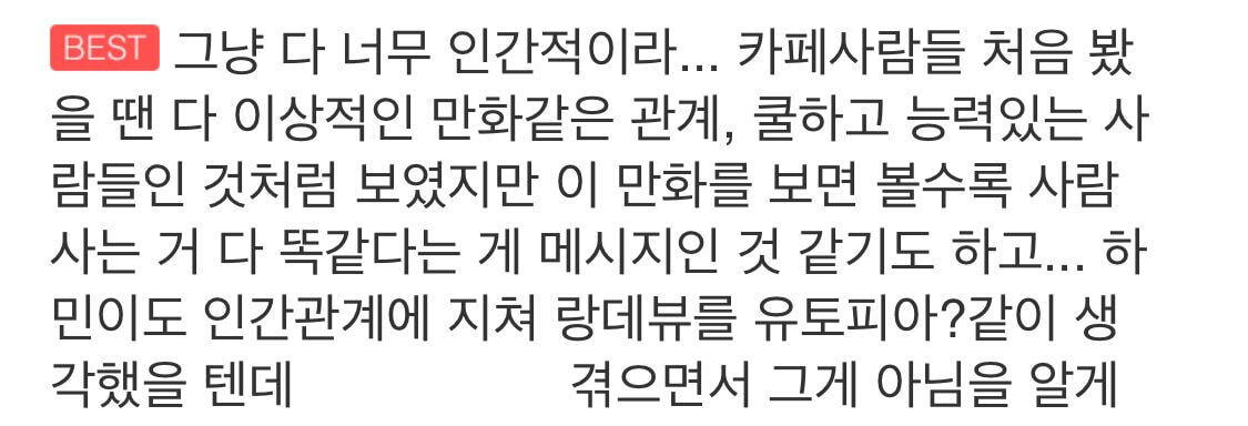 여기서 제일 기빨리는 웹툰인데 그만큼 뭔가를 다시 채워주는 느낌이기도 한.. 어떤 느낌이냐면
