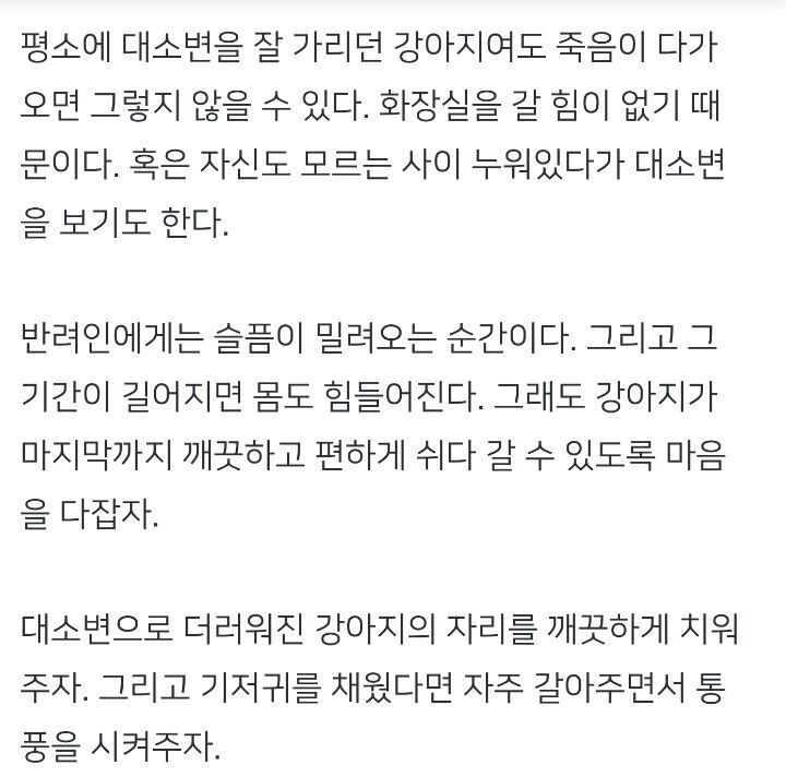 작성자엥 갑자기?? 작성시간 22.10.03 우리 강아지는 아팠는데 밥도 안 먹다가 가기 전날에는 평소처럼 지냈어 근데 가기 일주일 전부터 밤에 엄마를 가만히 쳐다만 보더라고.. 원래는 이불 속에 파고들고 그랬는데.. 아마 가기 전에 제일 좋아하는 엄마 얼굴 눈에 많이 담아두고 가려고 했나봐.. 잘 지내고 있지? 보고싶다 내동생