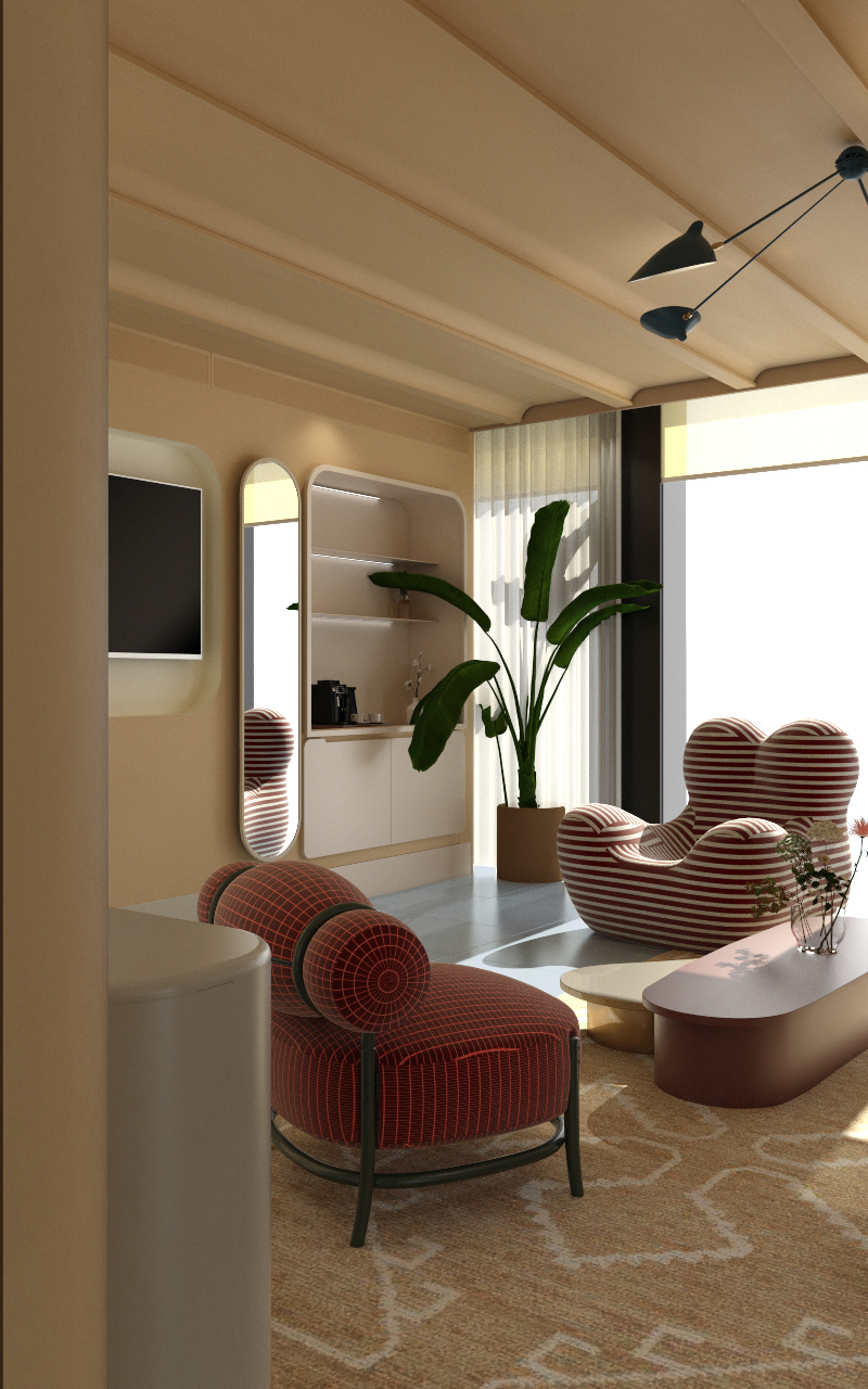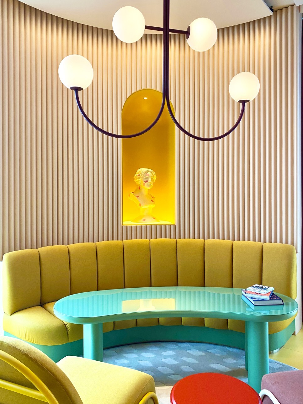 톡톡튀는 색 조합과 캐쥬얼한 분위기, 트렌디한 인테리어가 특징