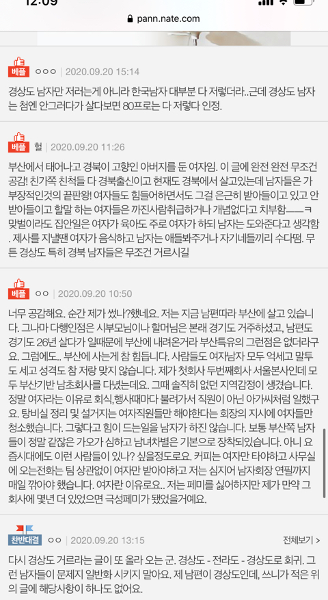 경상도 남자들은 전업주부를 자기 기쁨조나 하녀쯤으로 생각해요