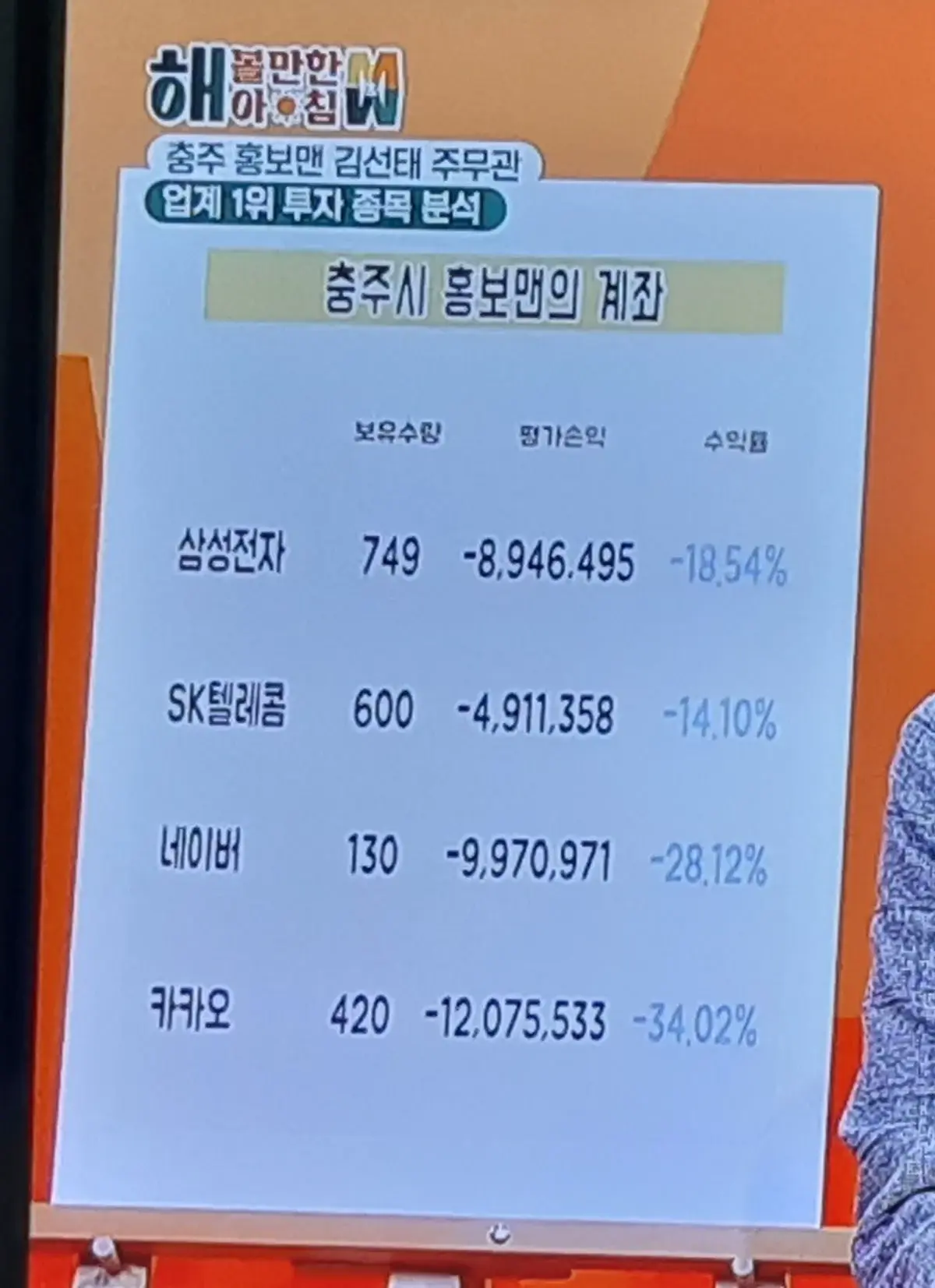 [흥미돋]충주시 홍보맨 현재 주식 계좌 상황 작성자머쓱타드|작성시간22.10.11|조회수16,835 목록 댓글 52 글자크기 작게가 글자크기 크게가 출처 : 여성시대 머쓱타드아침방송에 상담출연함...웃안웃 다음검색 현재 게시글 추가 기능 열기 북마크 공유하기 신고 센터로 신고 댓글 댓글 52 댓글쓰기 답글쓰기 댓글 리스트 작성자칼국수악개 | 작성시간 22.10.11 ㅋㅋㅋㅋㅋㅋ큐ㅠㅠㅠㅠㅠ 작성자Pekichuchu | 작성시간 22.10.11 내 삼전...내 ㅏ카오...어떡하냐 진짜 ㅜㅜ 작성자오늘의한강물온도는 | 작성시간 22.10.11 와... 남일이 아닌데... 와.. 씨드 장난 아니네;; 작성자호랭이 기운이 솟아난다! | 작성시간 22.10.11 나보다낫네........, 작성자비타진 | 작성시간 22.10.12 아..... 댓글 전체보기