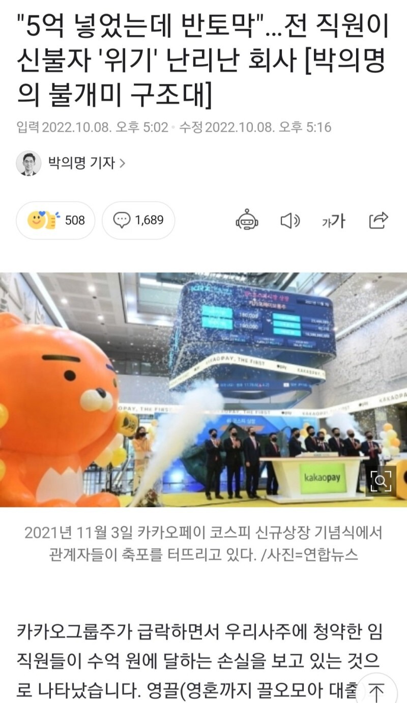 작성자다꺼져주길바랄개 작성시간 22.10.13 근데..임원은 팔수있는거 몰랐어..? 주식 투자를 몇백 몇천도 아니고 몇억을 때려박는데 그정도 조사도 안하고 덜컥 사버리는거임...?