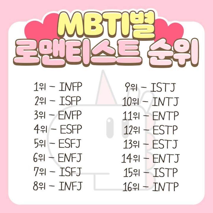 왜 infp isfp가 가장 사랑꾼이고 entj istp intp이 사랑꾼 순위 꼴지일까? estj등 mbti 이야기 모두 가능 자유로운 이야기 모두 가능