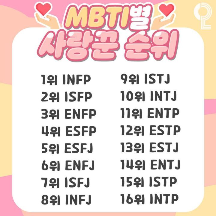 [스크랩] [흥미돋]mbti 사랑꾼순위 보면서 이 순위인 이유 말하는 달글 왜 infp isfp가 사랑꾼이고 istp intp이 사랑꾼 순위 꼴지일까