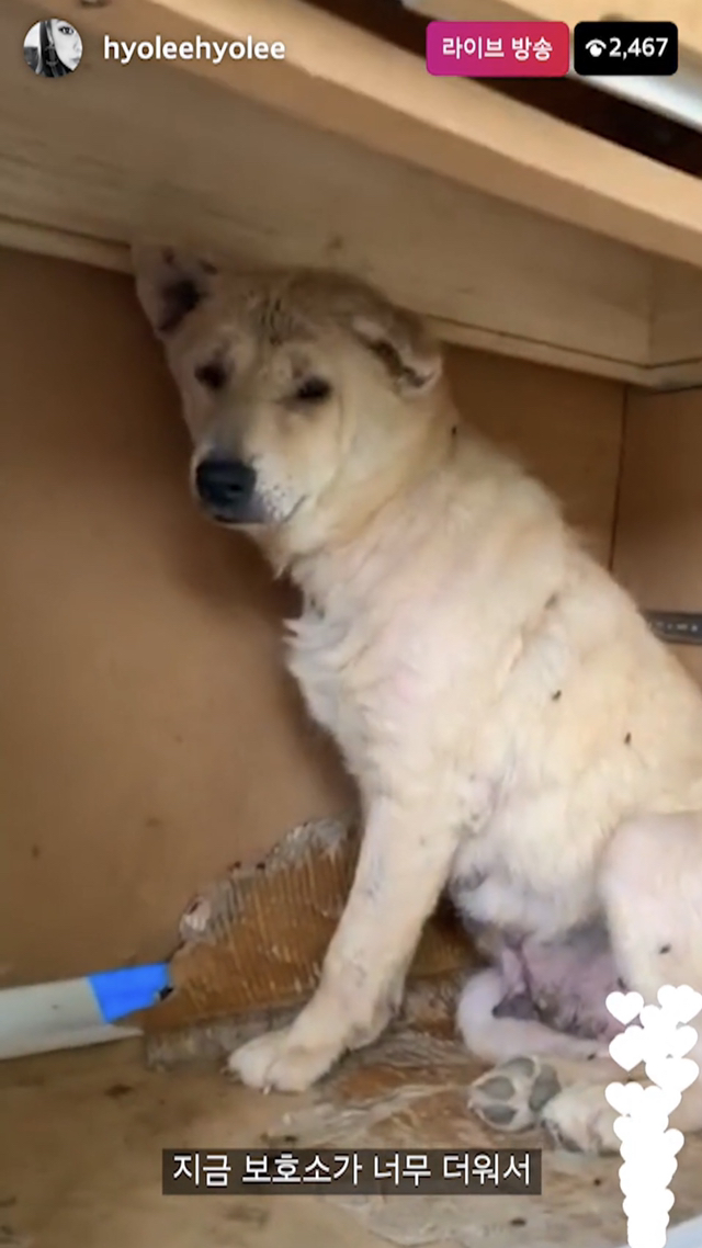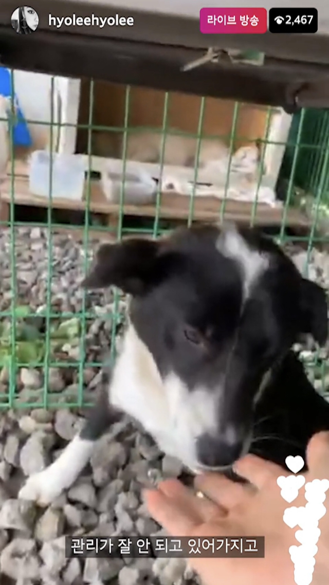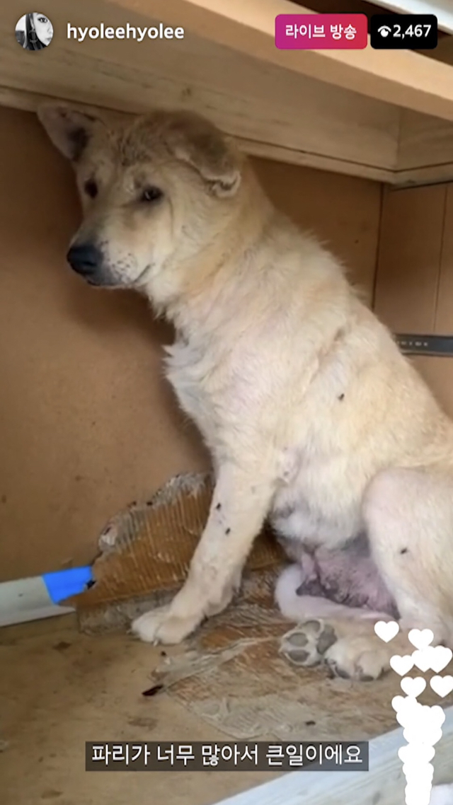 이효리가 임시보호 보내고 싶다고 너무 아쉬워 하는 아이긔 너무 순하고 사람손에 길러진 아이 같긔.. 눈쪽이랑 피부가 많이 안좋나보긔 이효리가 보고 병원으로 바로 데려가서 치료했다 하긔