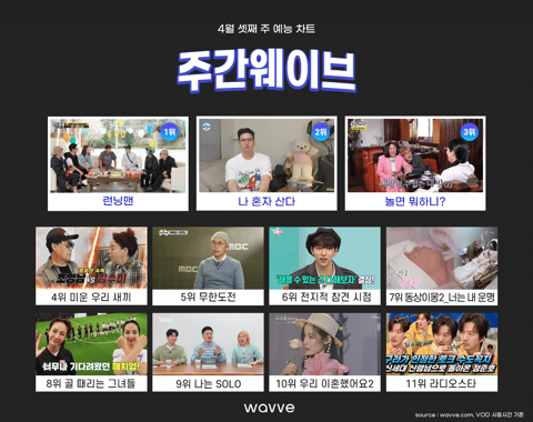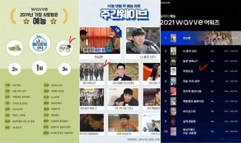 <2020년 웨이브 예능프로그램 1위 '런닝맨', 2위 '나 혼자 산다', 3위 '무한도전'이 차지했다/출처 https://v.daum.net/v/20220828112802388 >