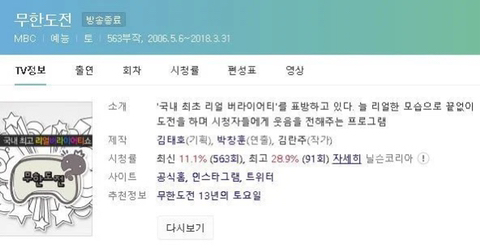 가장 최근에 공개한 주간 순위에서도 여전히 5위에서 버티고 있는 무한도전.