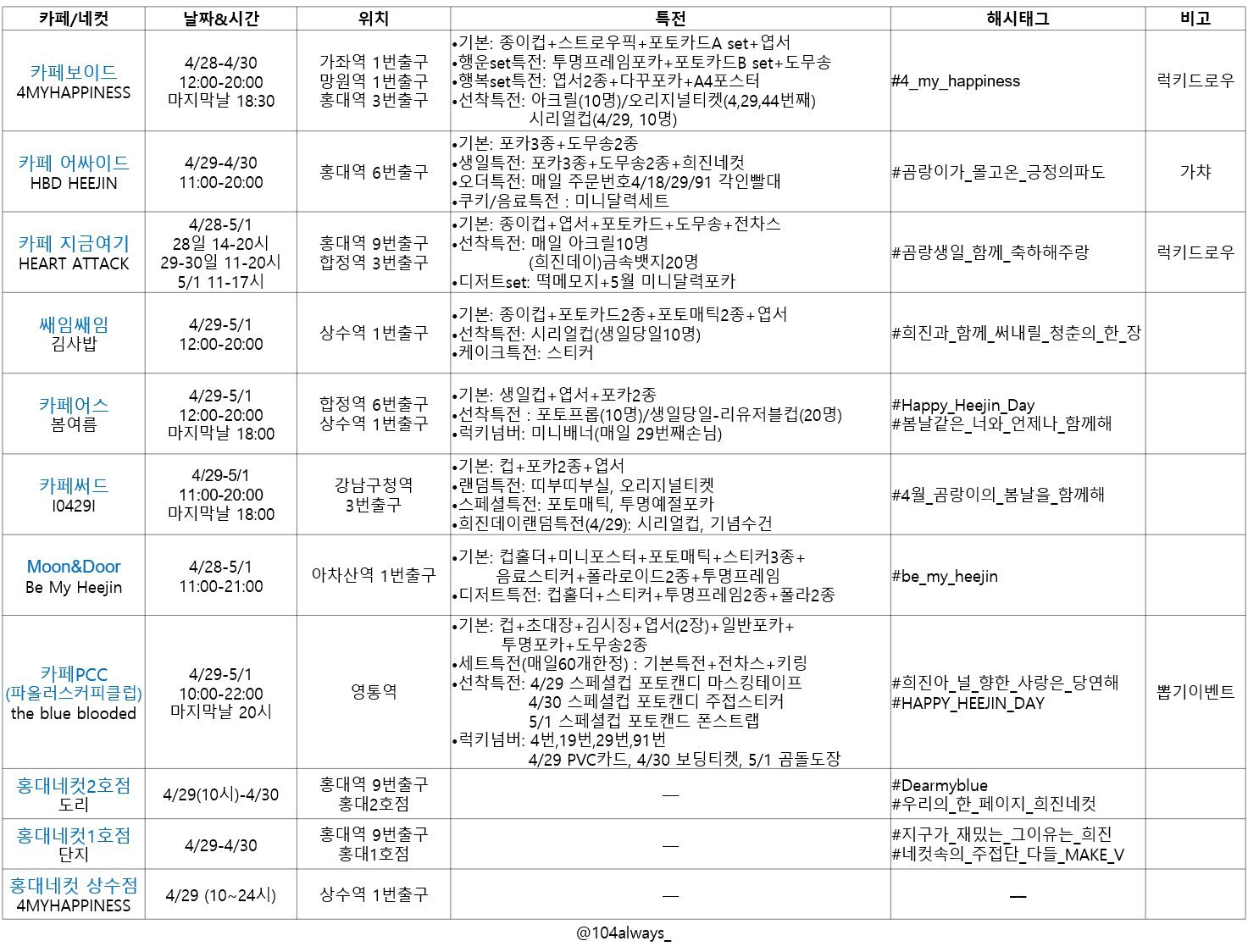 총 3일간 팬들이 열어준 생일카페 8곳을