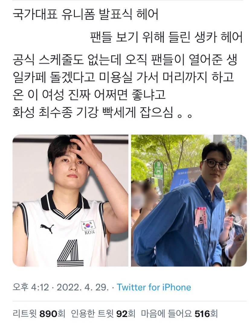 팬들 보려고 일부러 머리도 새로 셋팅하고