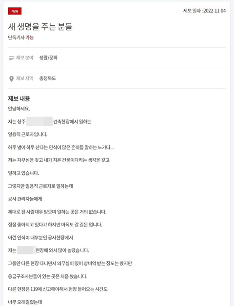 청주의 A 건설현장에서 노동자의 건강과 안전을 위해 배치된 응급구조사가 심정지 환자를 살렸다는 훈훈한 소식이 전해지고 있다.