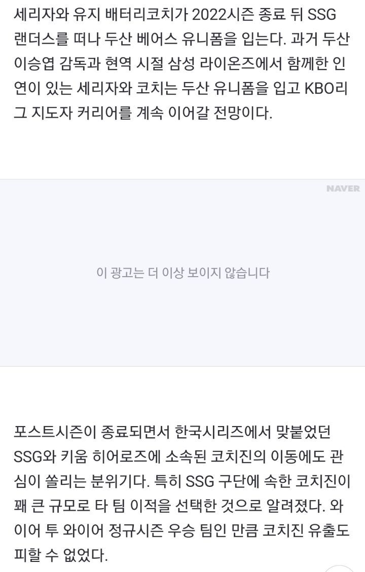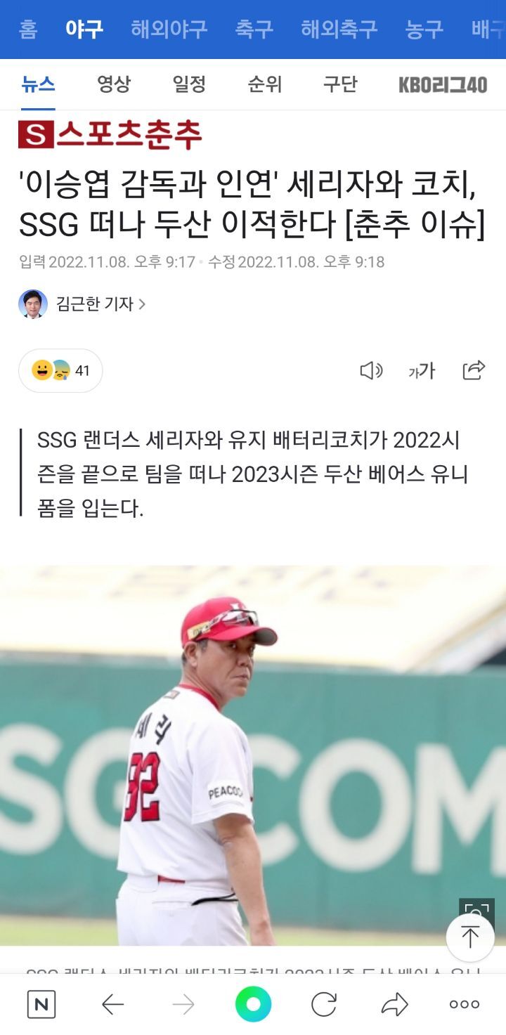 다른 SSG 코치진도 대거 이적 예정이라고함