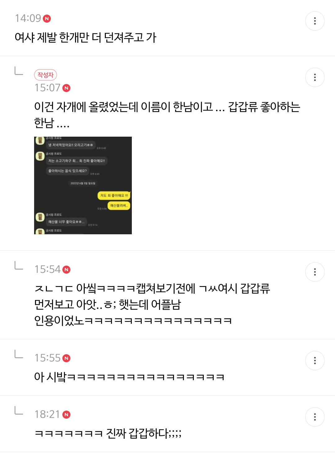 작성자쿠즈하 작성시간 22.11.11 갑갑류 ㅅㅂㅋㅋㅋㅋㅋㅋㅋ깝깝하다 증말