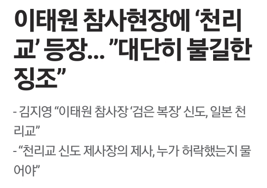 [스크랩] [흥미돋]이태원 참사현장에 ‘천리교’ 등장 작성자Air Pod|작성시간22.11.13|조회수18,427 목록 댓글 33 글자크기 작게가 글자크기 크게가 다음검색 스크랩 원문 : 이종격투기 현재 게시글 추가 기능 열기 북마크 공유하기 신고 센터로 신고 댓글 댓글 33 댓글쓰기 답글쓰기 댓글 리스트 작성자닭치시오 | 작성시간 22.11.13 아오 ㅅㅂ 나라꼴 잘 돌아간다 ㅡㅡ 작성자사랑하는 한남들아 죽어라 | 작성시간 22.11.13 쪽본 종교야????? 작성자랴랴 | 작성시간 22.11.13 아 소름끼쳐 작성자구이엄둥이 | 작성시간 22.11.13 시발 소금뿌려 작성자how... | 작성시간 22.11.14 뭐해? 댓글 전체보기