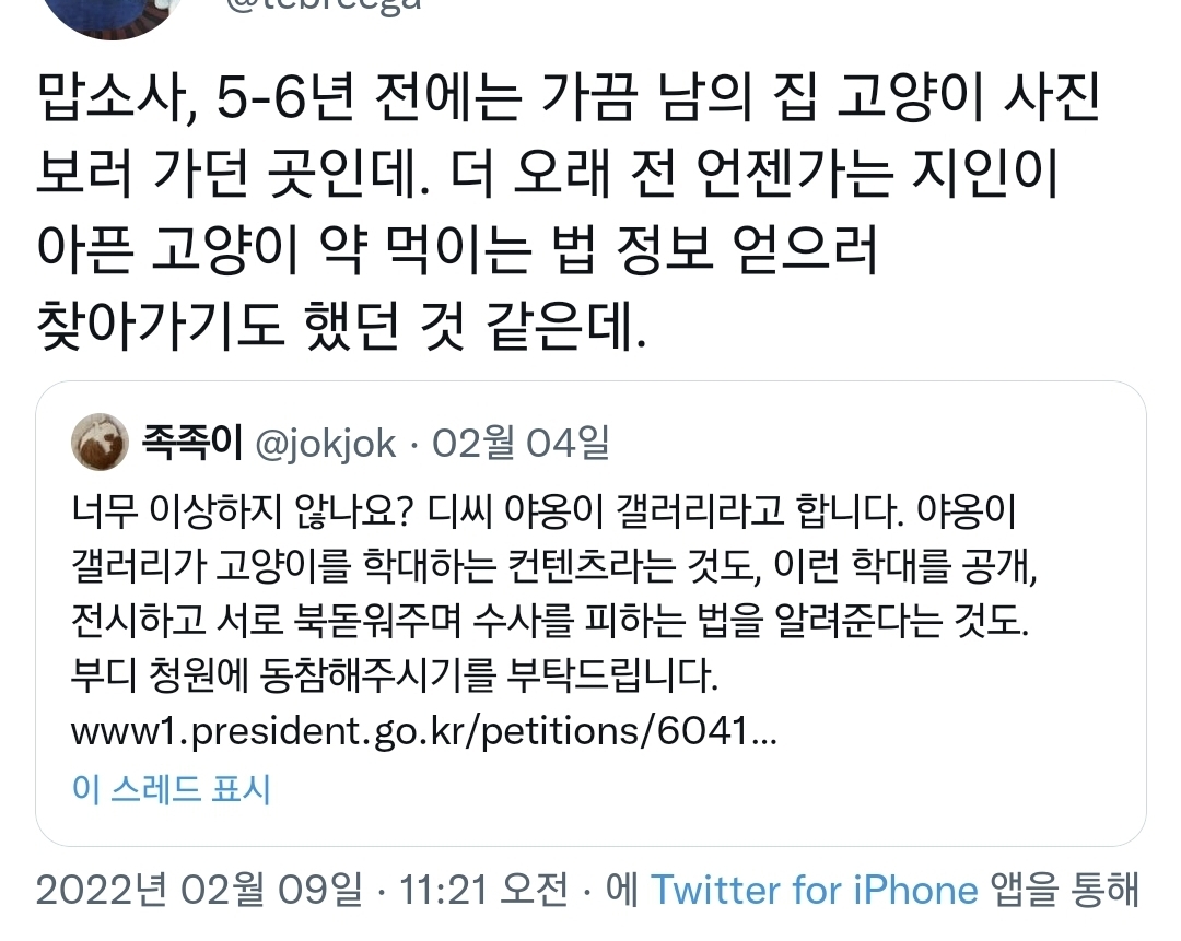 작성자가산동가물치 작성시간 22.11.18 나도 10년전에 냥갤 했었는데 그땐 진짜 예쁜 고양이들 사진 올라오는 집사갤이었음..