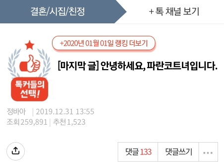 처음 썼던 글은 목적이 뚜렷한 글로 오늘의톡(?) 이런 것은 전혀 신경쓰지 않았음.