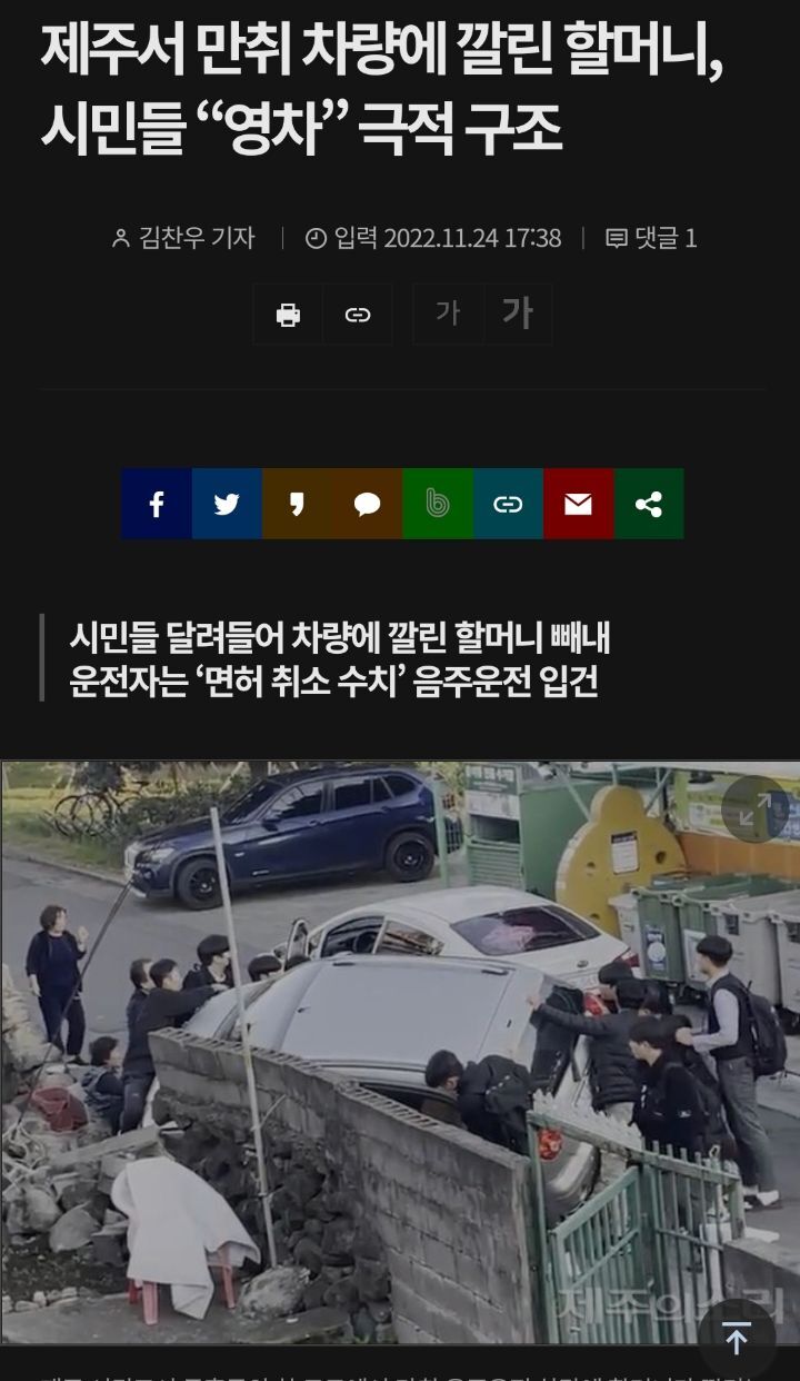 제주에서 음주운전 차량에 깔린 할머니를 시민들이 달려들어 극적으로 구조한 사연이 전해졌다.