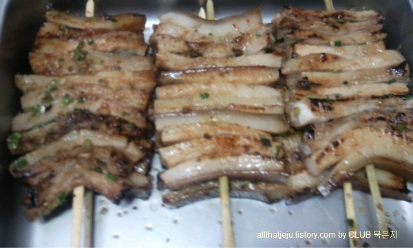 제주도는 돼지 옛부터 많이 먹었는데 돼지고기 간장 양념해서 도새기적갈이라고도 이름도 따로 있음 !! 아마 제주도께 전남에도 퍼져서 올리는거일거야 도새기적갈 제주도 전통음식이거든 !! -