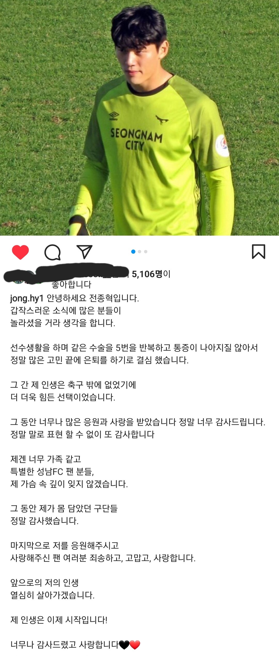 지난달 은퇴발표를 함