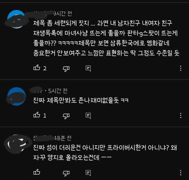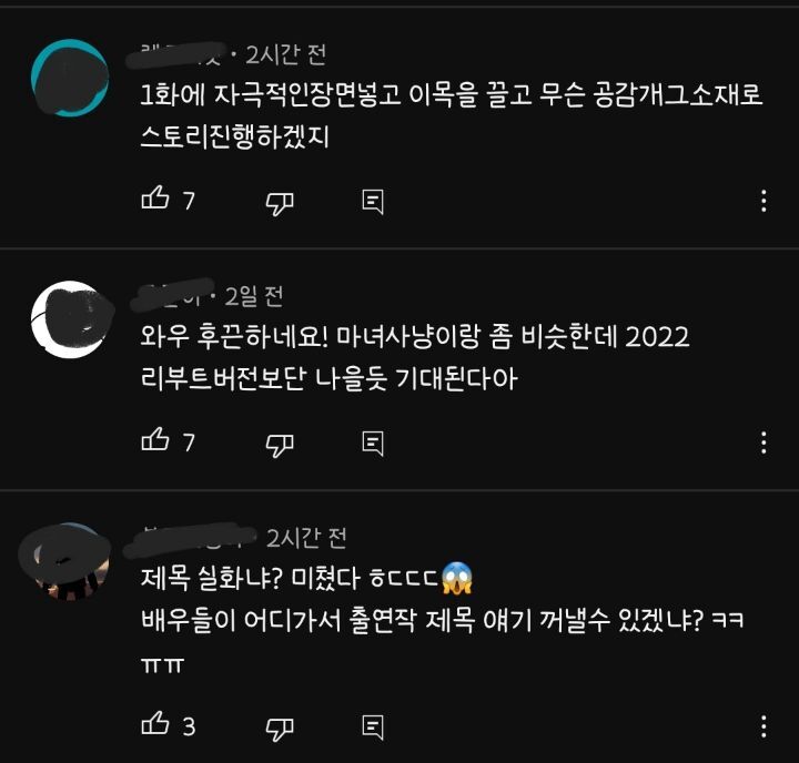작성자규름커 작성시간 23.01.23 댓글 뭐야 하니는 저런거만 찍느냐니 뭐니... 자기가 다른거나올땐 관심없었던거아니고? ㅠ 요즘도 여자연예인한테 이런댓글달리는줄 몰랐네 드라마 막상 보니 그렇게 이상한내용도 아니던데