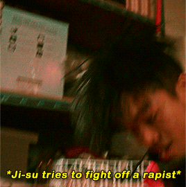 화염병 들고만 있던 승완 (돼지남)이 어쩔줄 몰라 우왕좌왕하고 있을 때 상황판단을 끝낸 은혁은 화염병을 던져버림