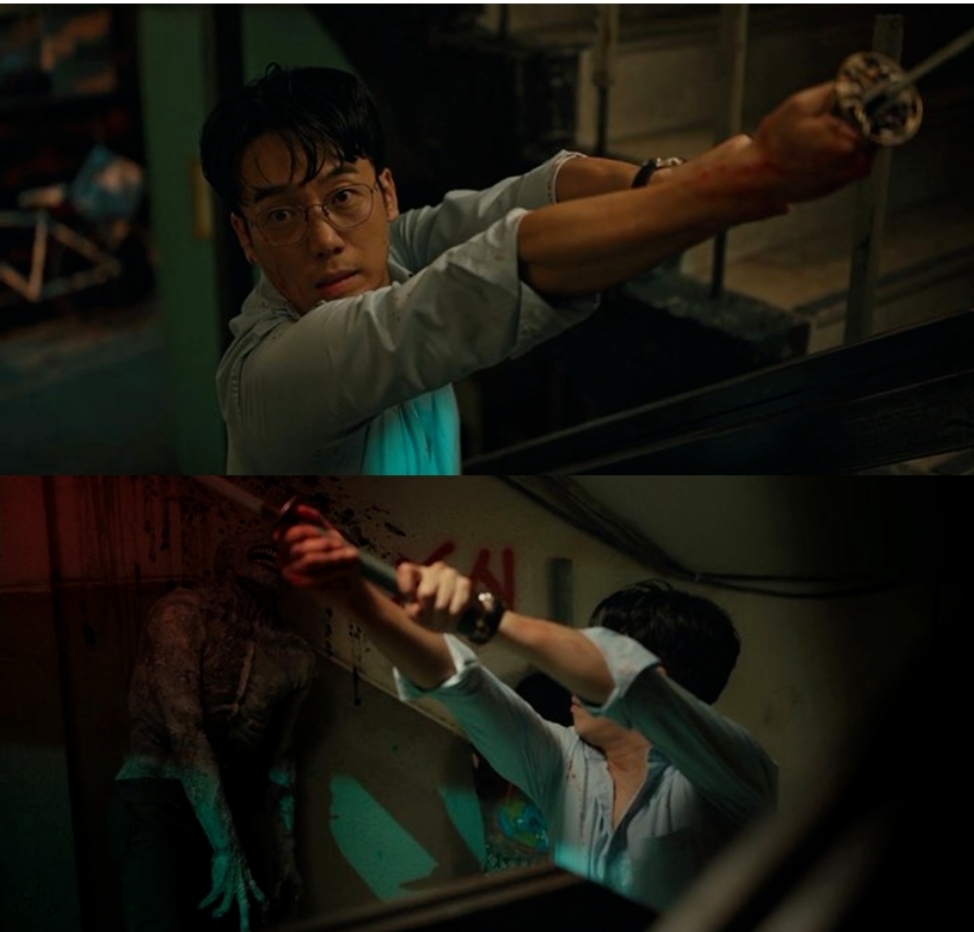 그 이후 괴물화가 시작되고 윤지수가 괴물인 줄 알고 배트로 쳤는데