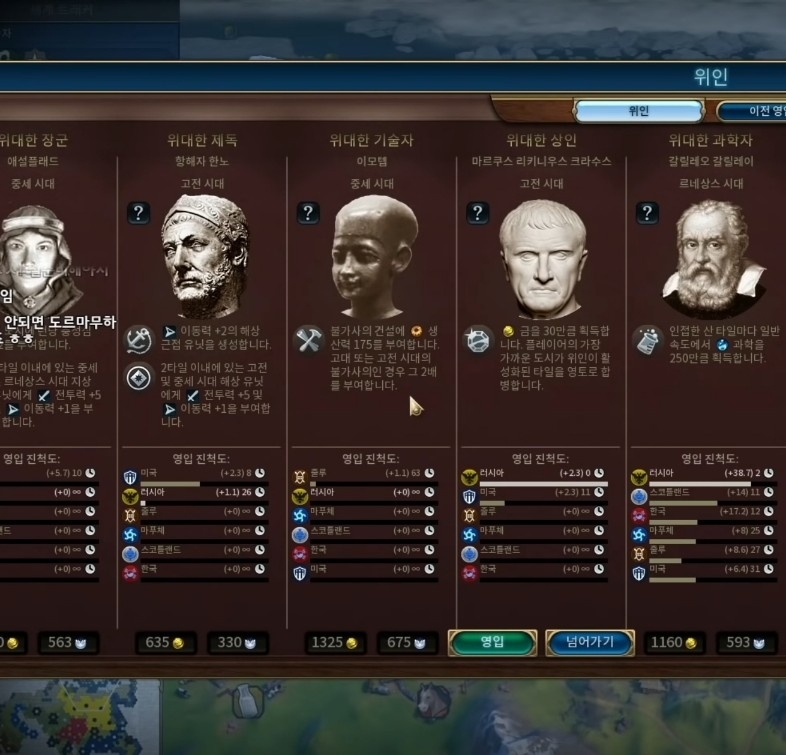 (문명 컨텐츠 중 위인 영입 - 약간의 버프 기술 같은거)