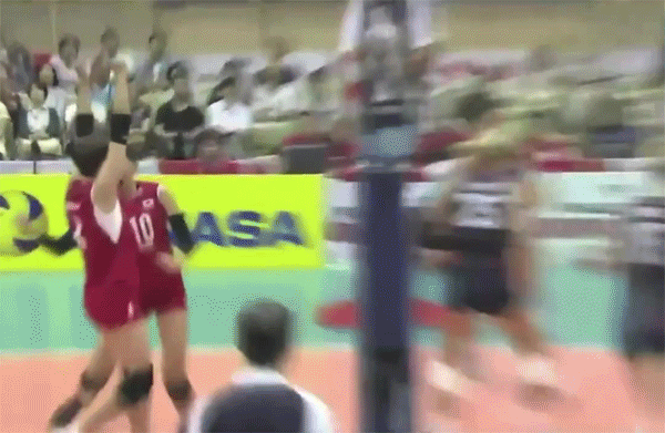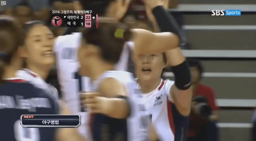 이건 연경 선수가 순간적으로 아웃인거 알고 넘어지면서 공을 피하는데