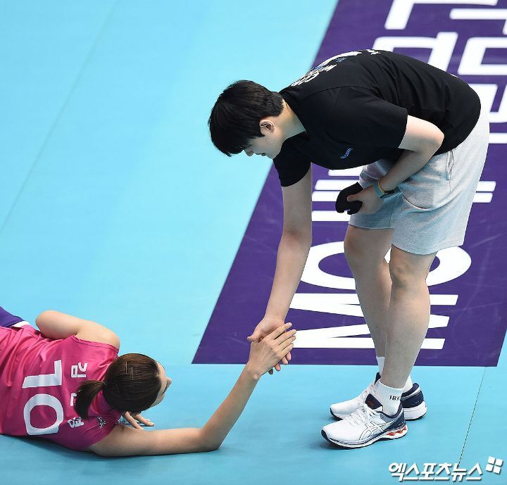 런올때 무심하게 머리 툭 쳐주던 연경 선수