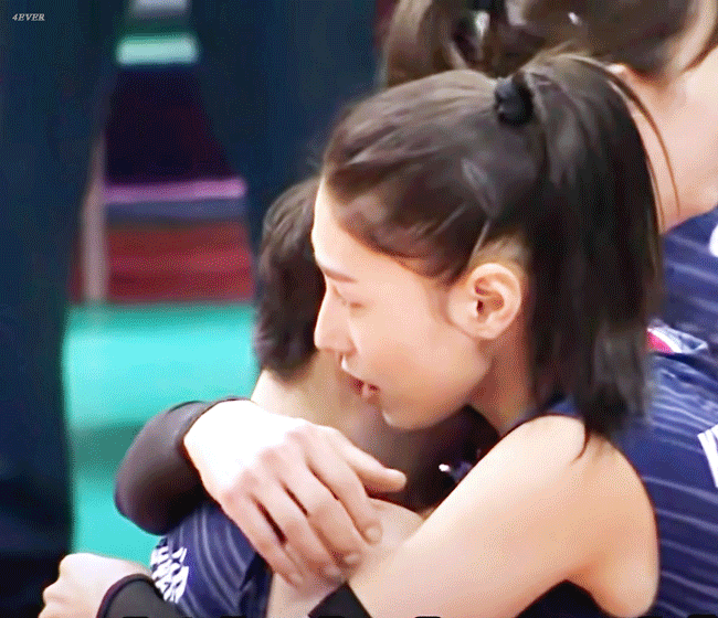 도쿄올림픽 예선 끝나고 출국후 연경 선수가 대표팀 선수들 안아주는데