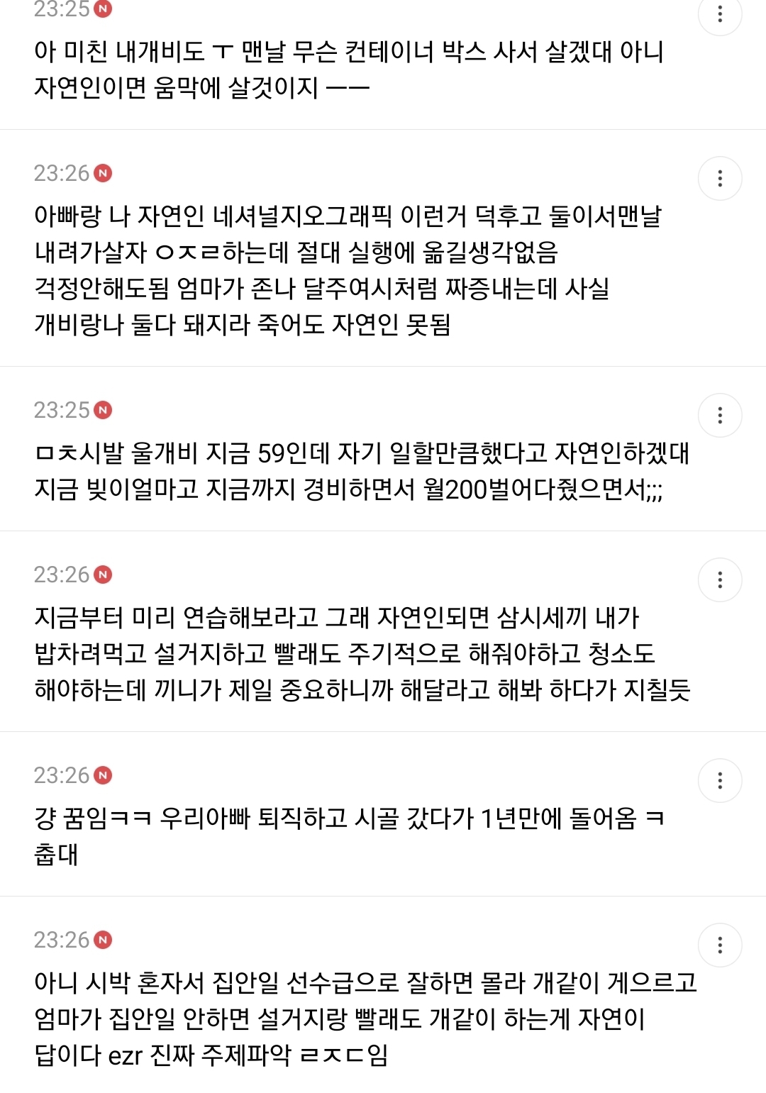 작성자규야규야규야 작성시간 22.12.16 다들 그랬던거야? 우리 아빠도 산 들어가서 살고 싶다는데... 산도 거의 사유지 아닌가요?ㅠㅠㅋㅋㅋㅋㅋㅋㅋㅋㅋ
