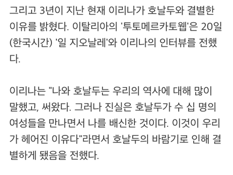 이리나 호날두랑 결별이유