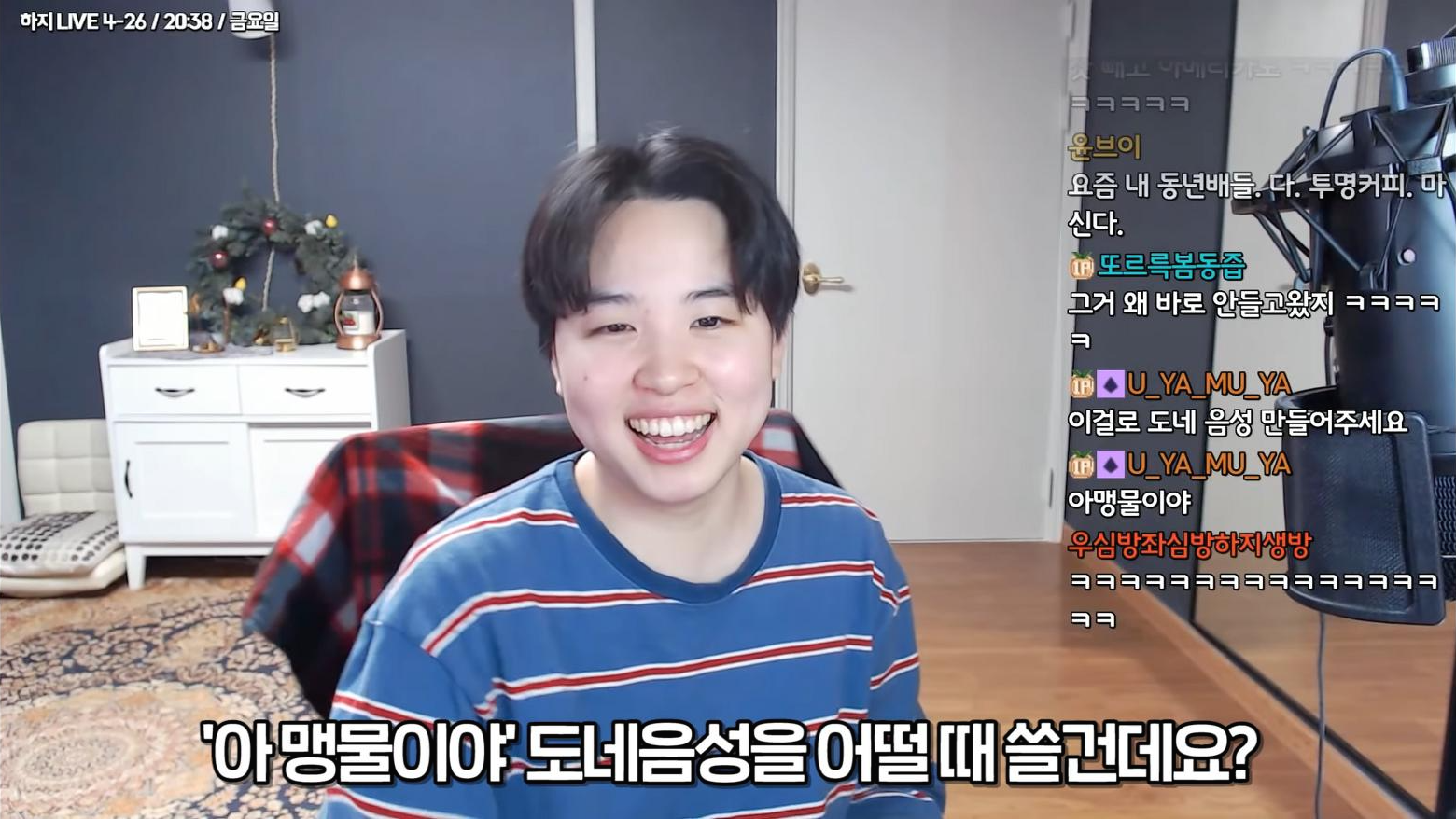 아 맹물이야는 하지 생방송 도네 음성, 유행어가 되었음