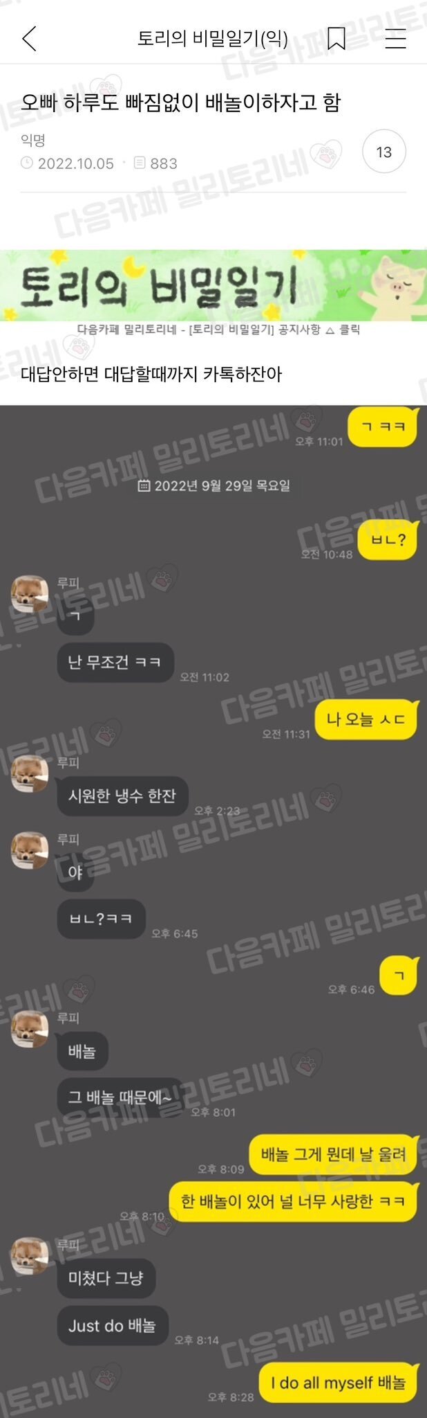 [스크랩] [흥미돋]배놀 남매 모음집.jpg 작성자마셜리|작성시간22.12.27|조회수56,677 목록 댓글 127 글자크기 작게가 글자크기 크게가 출처 : https://twitter.com/milytoryfan/status/1583294806855294976?s=46&t=4LijOjyPWP0QylaaKL44yQhttps://twitter.com/milytoryfan/status/1593465903236100096?s=46&t=Nr7GWeWhDP9SXHE5Ov8yag혐오댓 달면 꿀밤 날림 👊오늘 뜬 신작 Q. 배놀이 머임?A. 다음검색 스크랩 원문 : *여성시대* 차분한 20대들의 알흠다운 공간 현재 게시글 추가 기능 열기 북마크 공유하기 신고 센터로 신고 댓글 댓글 127 댓글쓰기 답글쓰기 댓글 리스트 작성자샘랑둥이 | 작성시간 24.03.09 개웃겨 ㅌㅋㅋㅋㅋㅋㅋㅋㅋㅋㅋ 작성자카이엔석파랑 | 작성시간 24.03.09 왘ㅋㅋㅋㅋㅋ너무 행복할듯 ㅅㅂㅋㅋㅋ 작성자가을좋아아아 | 작성시간 24.03.09 진심 영상 보고싶디ㅏ 작성자가나디애요 | 작성시간 25.01.03 ㅋㅋㅋㅋㅋ대항해시작 ㅜㅜㅜㅜㅜ개웃갸진짜개터짐 작성자Chillingismybusiness | 작성시간 25.08.11 에드워드 양구 ㅆㅂ ㅋㅋㅋ 댓글 전체보기