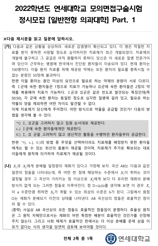 (연세대 의대는 정시에서도 면접이 p/f가 아니기에 면접 못보면 수능 점수가 최초 합격권이라도 떨어질 수 있음. 작년에도 그런 학생이 발생함)