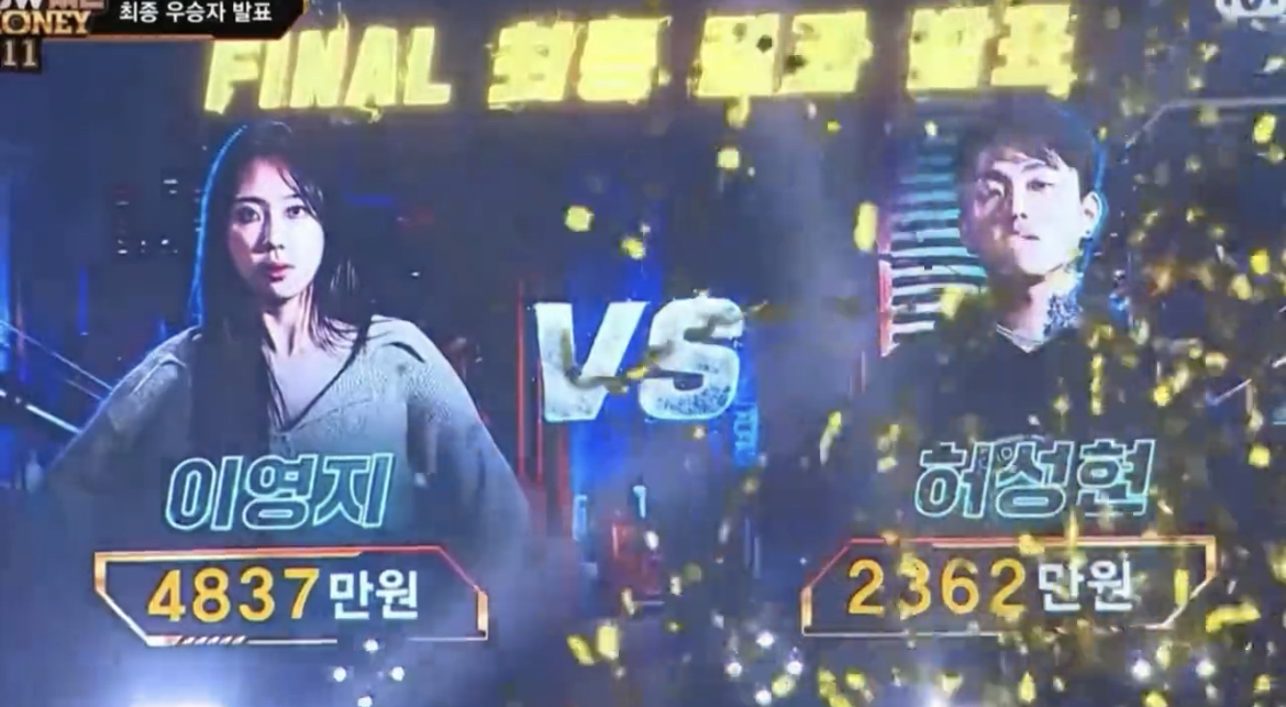 [흥미돋]쇼미더머니11 이영지-허성현 득표 차이.jpg 작성자스테이씨 재이|작성시간22.12.31|조회수53,648 목록 댓글 185 글자크기 작게가 글자크기 크게가 출처 : 여성시대 스테이씨 재이최종 우승자 이영지 4837만원준우승자 허성현 2362만원2배 넘게 차이남^^🤭(상금 아니고 득표를 돈으로 환산한거라고 보면됨)쇼미더머니11 최종 우승자 이영지 축하해❤️ 다음검색 현재 게시글 추가 기능 열기 북마크 공유하기 신고 센터로 신고 댓글 댓글 185 댓글쓰기 답글쓰기 댓글 리스트 작성자소현명 | 작성시간 23.01.01 영지최고❤️ 작성자인생 뭐 있나 | 작성시간 23.01.01 영지외엔 아무도 모름ㅋㅋ쿠ㅜ 작성자밀크티얌사랑해 | 작성시간 23.01.01 역시 영지!!! 작성자새우탕탕면 | 작성시간 23.01.01 헉 영지ㅠㅠ 작성자육구시타리아 | 작성시간 23.01.02 영지 축하해 👍👍💕 댓글 전체보기