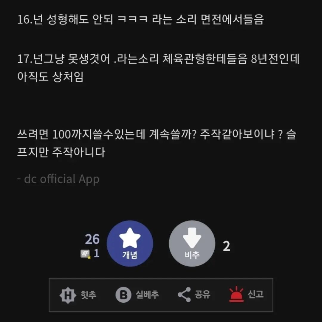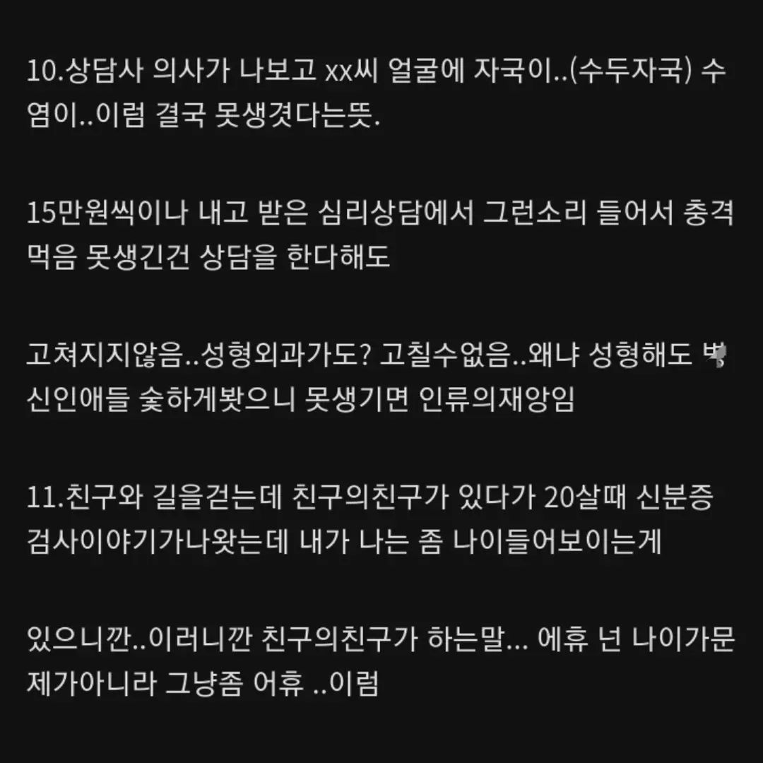 작성자over the moon 작성시간 22.12.31 외모가지고 다들 비하 안했으면 좋겠네..