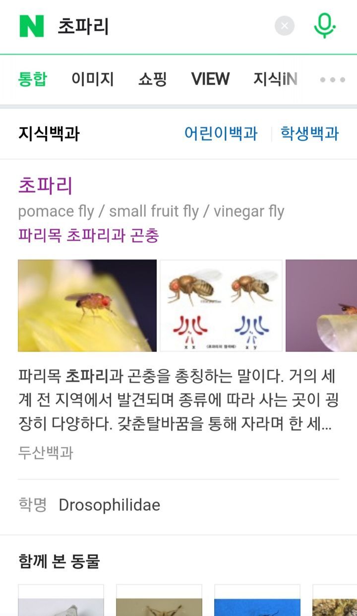 네이년에 검색해보면 이렇게.. 노랑 초파리가 바로 뜨긔