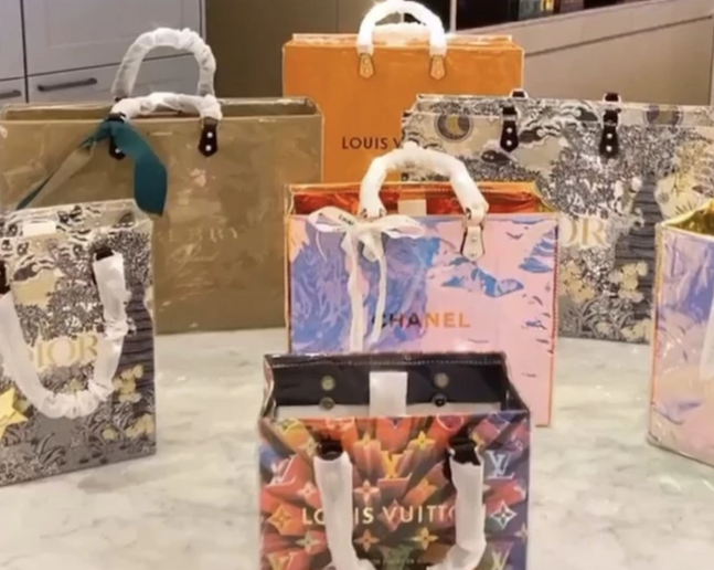 명품 사면 주는 쇼핑백에 PVC 씌우고 손잡이 바꿔서 명품백처럼 들고 다니는거임...