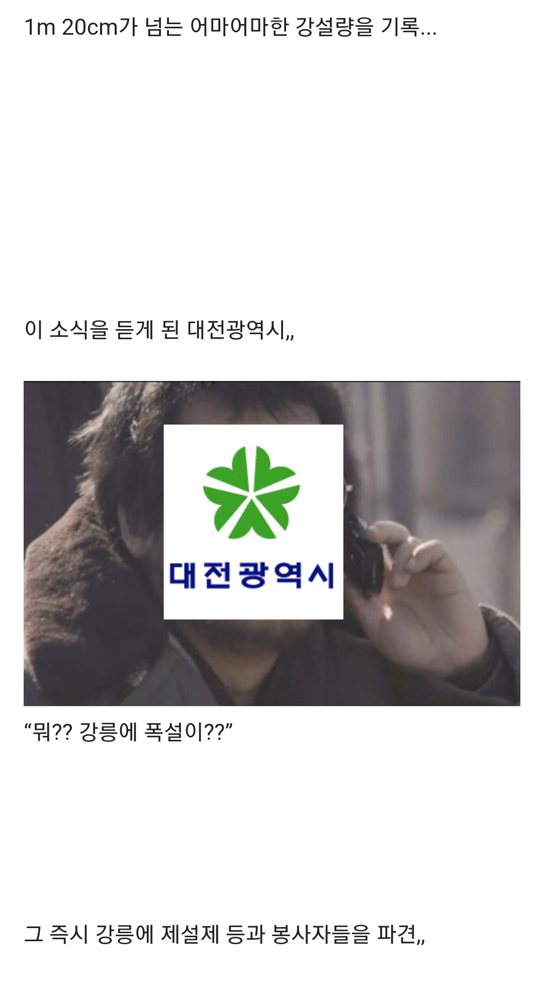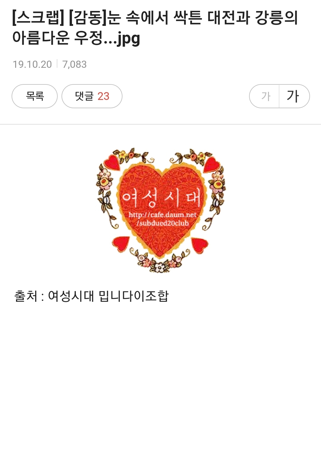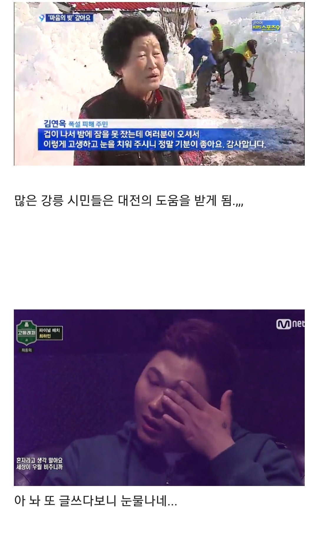 [스크랩] [흥미돋]눈 속에서 싹튼 대전과 강릉의 아름다운 우정...jpg 작성자마루는 고영|작성시간23.01.05|조회수6,300 목록 댓글 27 글자크기 작게가 글자크기 크게가 출처 : 여성시대 마루는 고영원글 삭제라 긁어옴..원글여시 글 올라온거 싫으면 비댓 남겨주오.. 다음검색 스크랩 원문 : *여성시대* 차분한 20대들의 알흠다운 공간 현재 게시글 추가 기능 열기 북마크 공유하기 신고 센터로 신고 댓글 댓글 27 댓글쓰기 답글쓰기 댓글 리스트 작성자worthed | 작성시간 23.01.05 대전이 도우러온다고 했을때 너무 귀여웠을거야 강릉은 작성자시공의균열 | 작성시간 23.01.05 힝 나 강릉 고향인데 대전분들 친하게 지내요~♡ 작성자코리락쿠마 | 작성시간 23.01.06 미친 어머님 인터뷰 옆에 눈 쌓인더봐;; 대박 작성자돈많은백수강쥐 | 작성시간 23.01.06 따수워ㅜㅠ 작성자장트러블메이커22 | 작성시간 23.01.08 따숩다....넘 따수워ㅠㅠ 댓글 전체보기