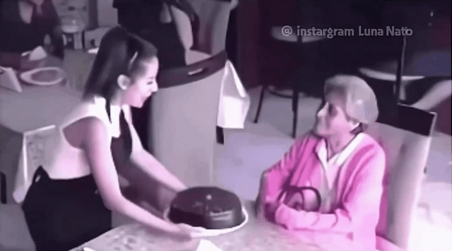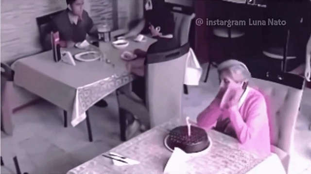 식당에서 홀로 자신의 생일을 축하하고 있는 할머니...