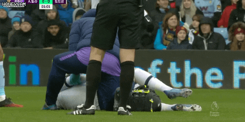 경기시작 45초만에 상대팀 수비수랑 크게 부딪치면서
