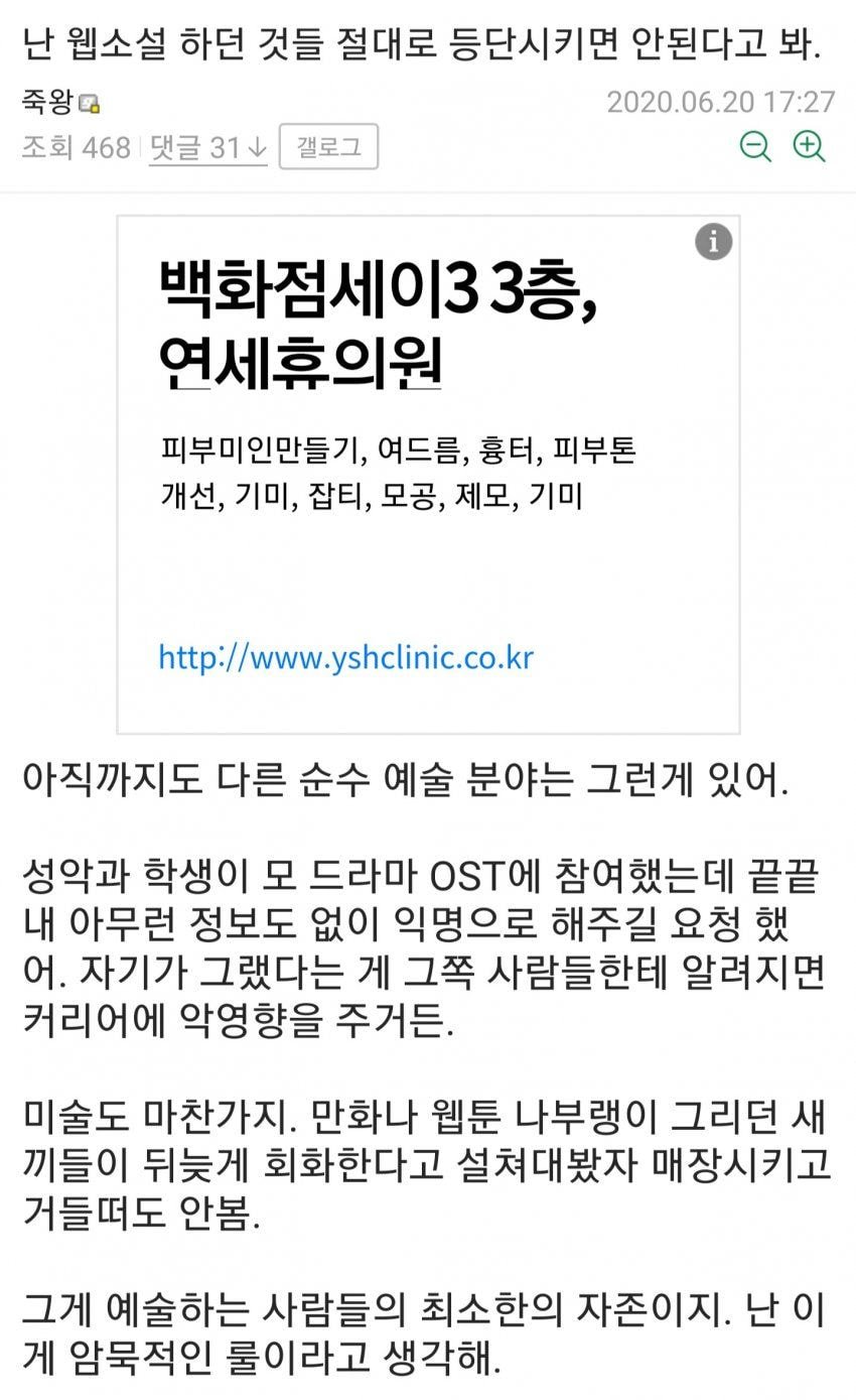 신춘 문예에서 웹소설 작가 하나가 등단해서 난리 났었다고 한다