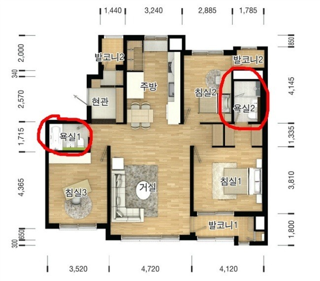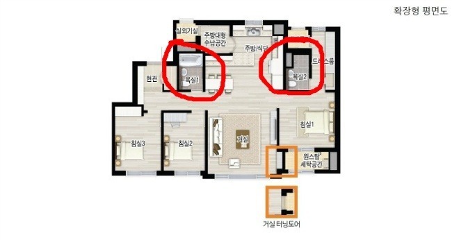 아파트 평면도를 보면 좀 더 확실히 알 수 있습니다.